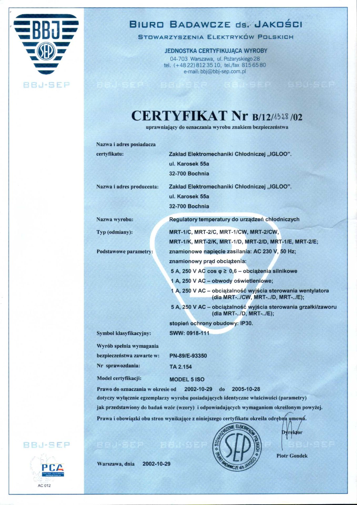 Regulator temperatury typu MST-5 jest uniwersalnym mikroprocesorowym sterownikiem temperatury przeznaczonym do zastosowania w urządzeniach chłodniczych. Regulator ten składa się z dwóch elementów połączonych ze sobą rozłącznym przewodem tasiemkowym: panel odczytowo-nastawczy oraz panel sterujący.